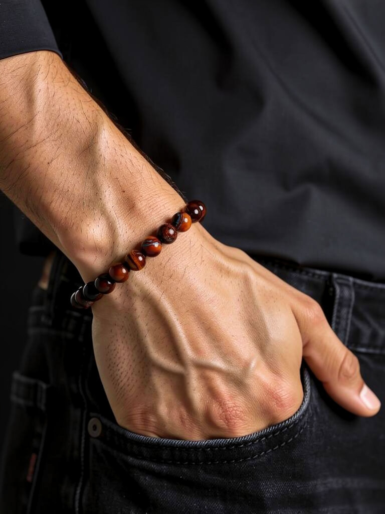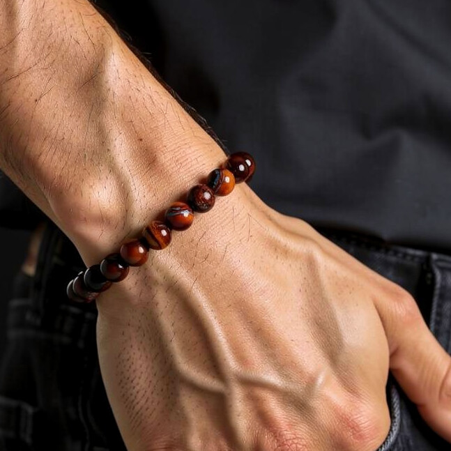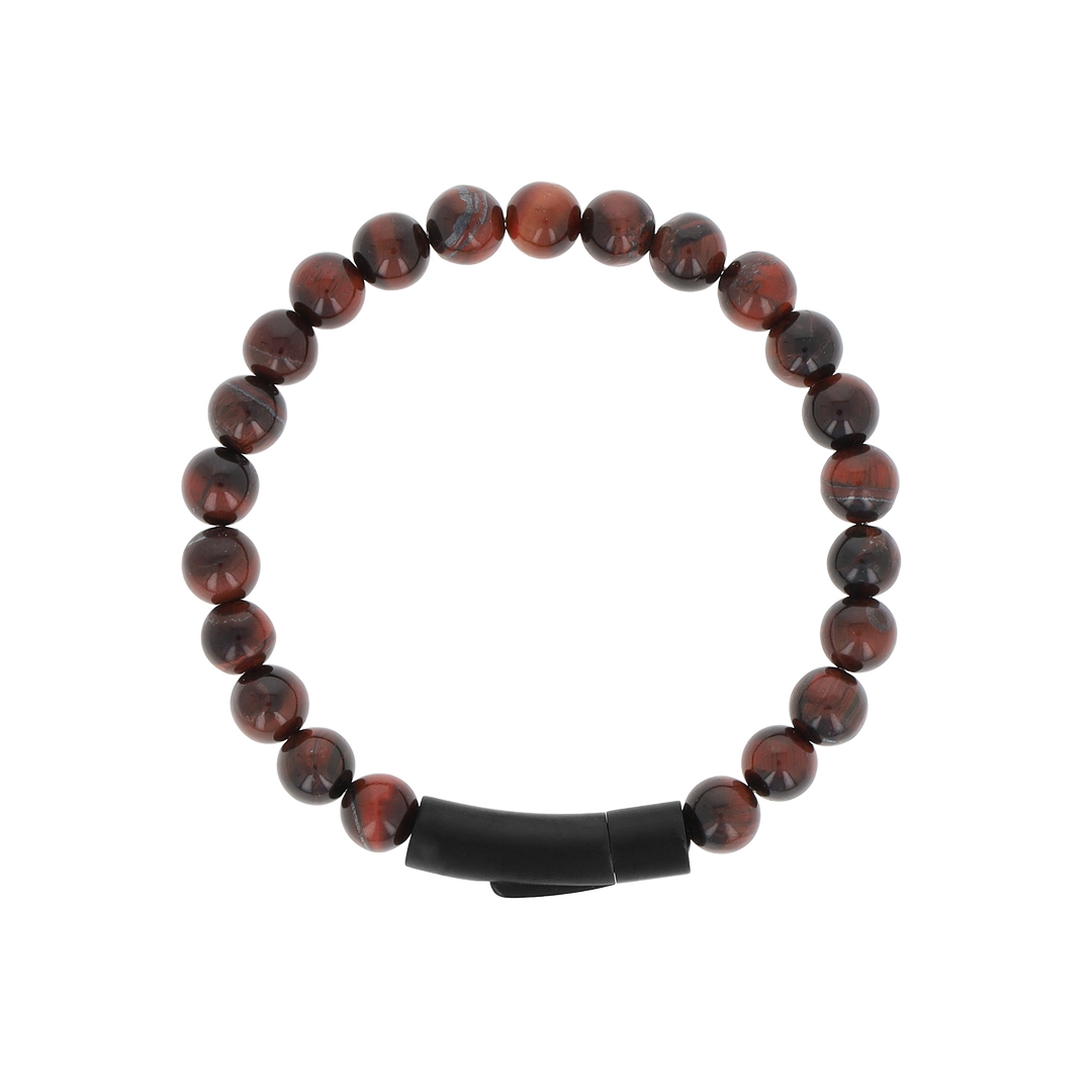Ατσάλινο βραχιόλι Red tiger eye 8mm black 19.5mm (SB-1067-195)