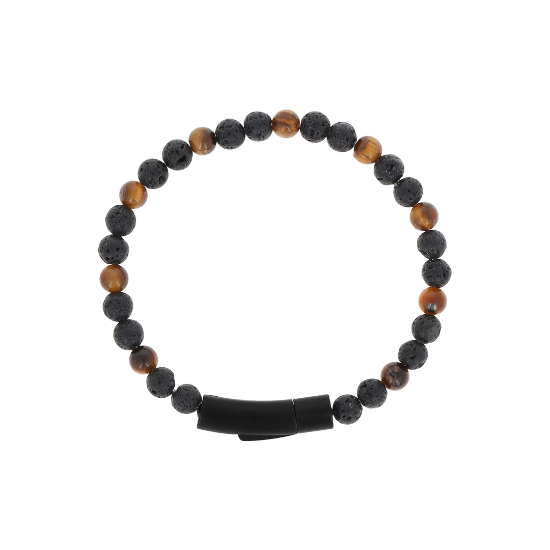 Ατσάλινο βραχιόλι Vulcano rock &Yellow tiger eye 8mm black 19.5mm (SB-1065-195)