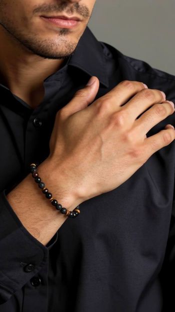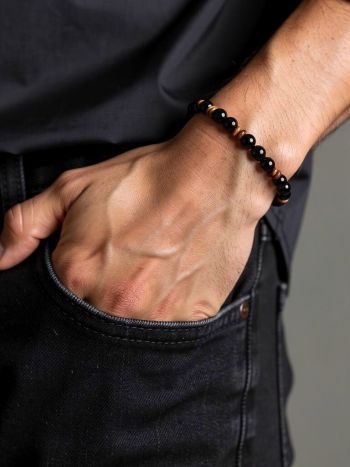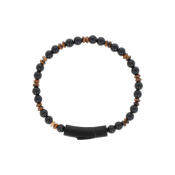 Ατσάλινο βραχιόλι Yellow tiger eye & Balck onyx 19.5mm (SB-1064-195)