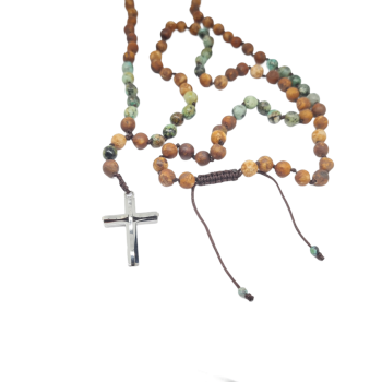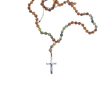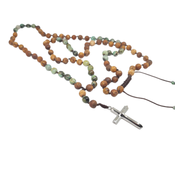 Ροζάριο με τυρκουάζ, αχάτη και ατσάλινο σταυρό (code KT002274)