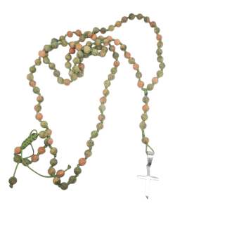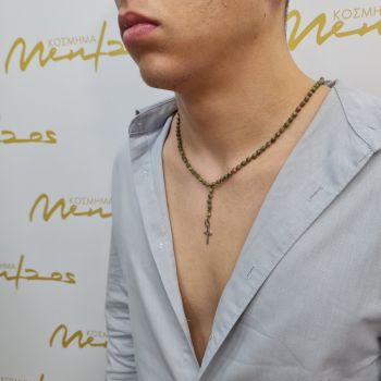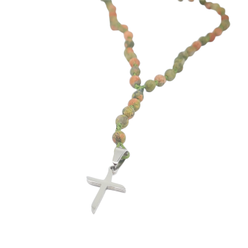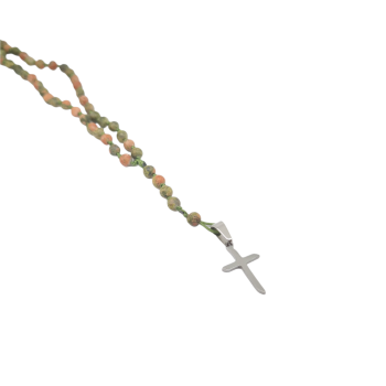 Ροζάριο με ουνακίτες (Unakite) και ατσάλινο σταυρό (code KT002280)