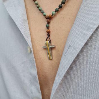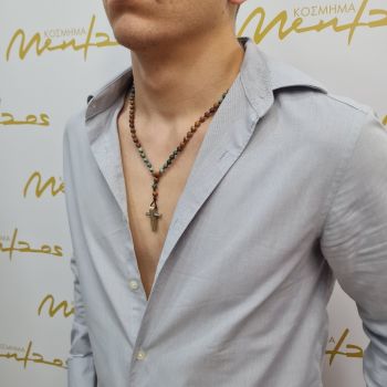 Ροζάριο με ουνακίτες (Unakite) και ατσάλινο σταυρό (code KT002313)