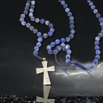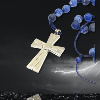 Ροζάριο με Σοδαλίτη (Sodalite) και ατσάλινο σταυρό (code KT002340)