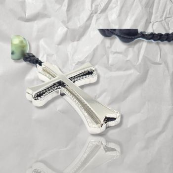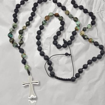 Ροζάριο με τυρκουάζ, μαύρο όνυχα και ατσάλινο σταυρό (code KT002326)