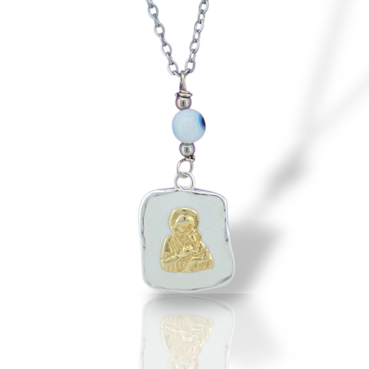 Φυλαχτό αυτοκινήτου δυο όψεων με ματάκι και καδενάκι με λευκό σμάλτο