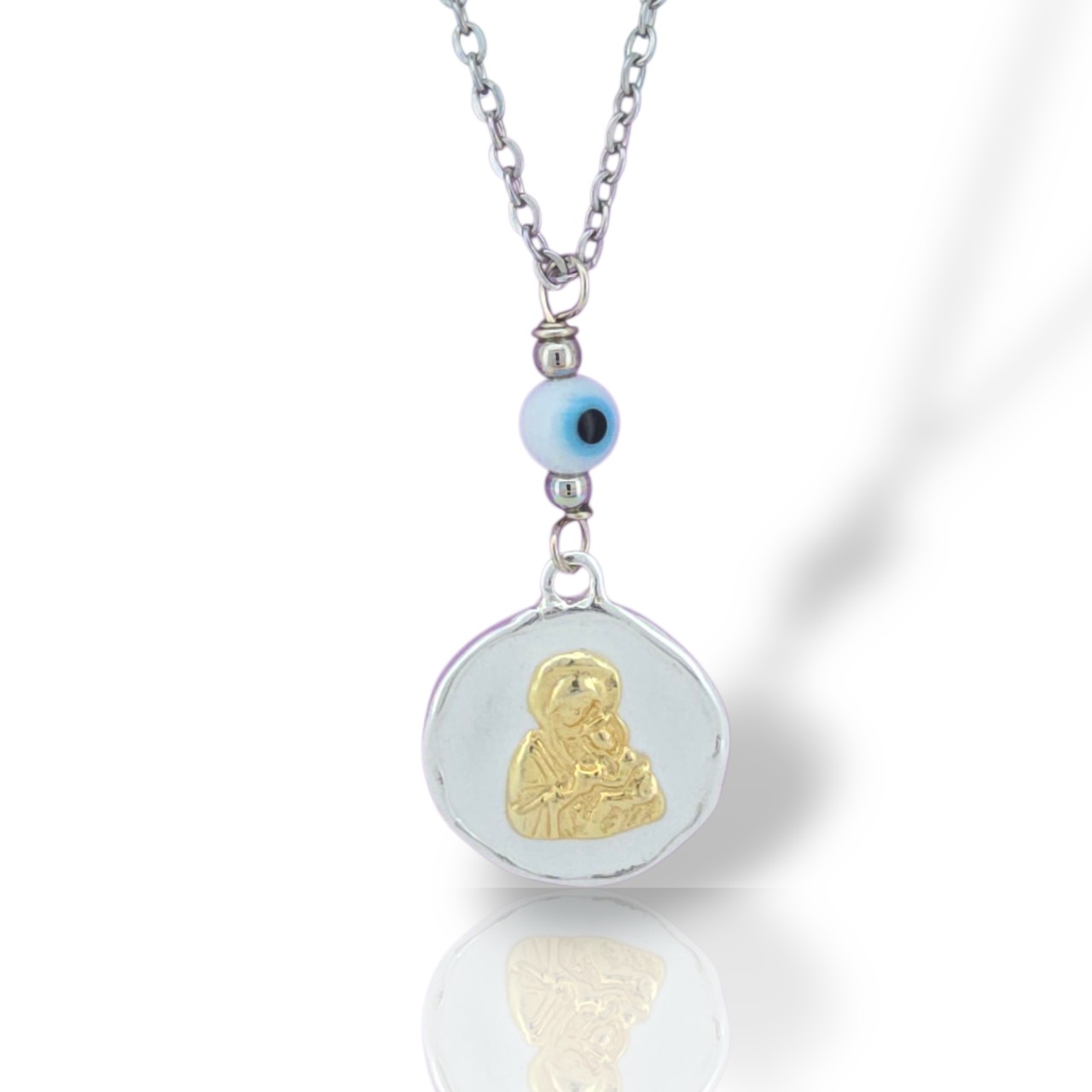Φυλαχτό αυτοκινήτου δυο όψεων με ματάκι και καδενάκι με λευκό σμάλτο