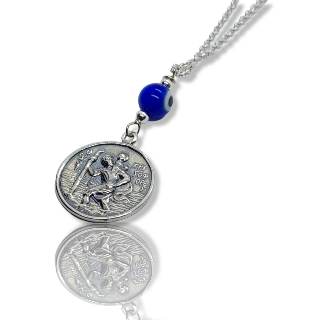 Φυλαχτό αυτοκινήτου Αγ. Χριστόφορος απο ασήμι 925° (code L002422)