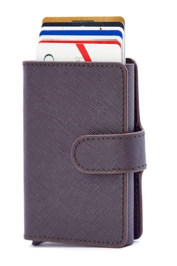 Πολύ πρακτικό και κομψό, αυτό το πορτοφόλι συνδυάζει λειτουργικότητα και σύγχρονο σχεδιασμό. Διαθέτει ενσωματωμένο αλουμινένιο μηχανισμό με χωρητικότητα έως 6 κάρτες, εξοπλισμένο με σύστημα γρήγορης αποδέσμευσης, που επιτρέπει την άμεση και εύκολη πρόσβαση στις πιστωτικές κάρτες μέσω του κάτω μοχλού. Παράλληλα, προσφέρει επιπλέον χώρο με 2–3 θήκες για κάρτες, καθώς και υποδοχές για μικρά έγγραφα, αποδείξεις ή εισιτήρια, τα οποία τοποθετούνται με ασφάλεια στην ειδική τους τσέπη. Συνιστάται για συνολικά έως 9 κάρτες (αλουμινένιος μηχανισμός: μέγιστο 6–7 κάρτες). Κατασκευασμένο από γνήσιο δέρμα Saffiano, γνωστό για την κομψή όψη και την υψηλή αντοχή του, αποτελεί ιδανική επιλογή για καθημερινή χρήση με στυλ.