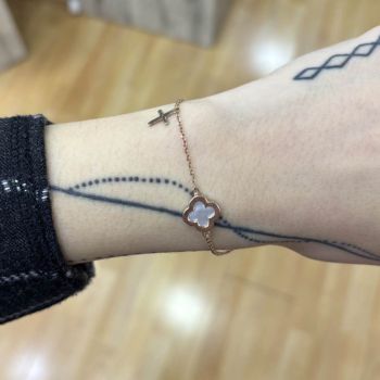 Βραχιόλι απο ροζ χρυσό κ9 με σταυρουδάκι απο φίλντισι (code AL2173)