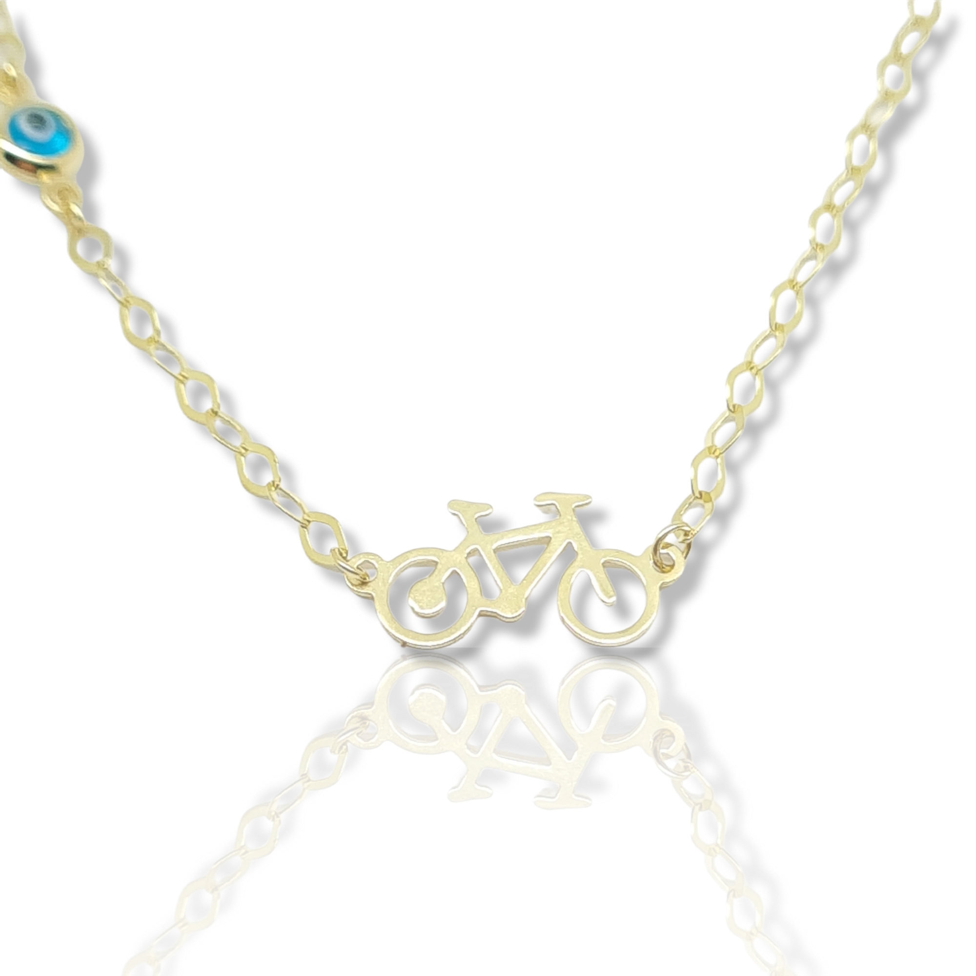 Βραχιόλι χρυσό κ9 με ποδηλατάκι και ματάκι (code AL2362)