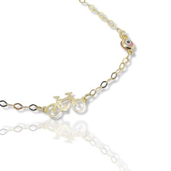 Βραχιόλι χρυσό κ9 με ποδηλατάκι και ματάκια (code AL2361)