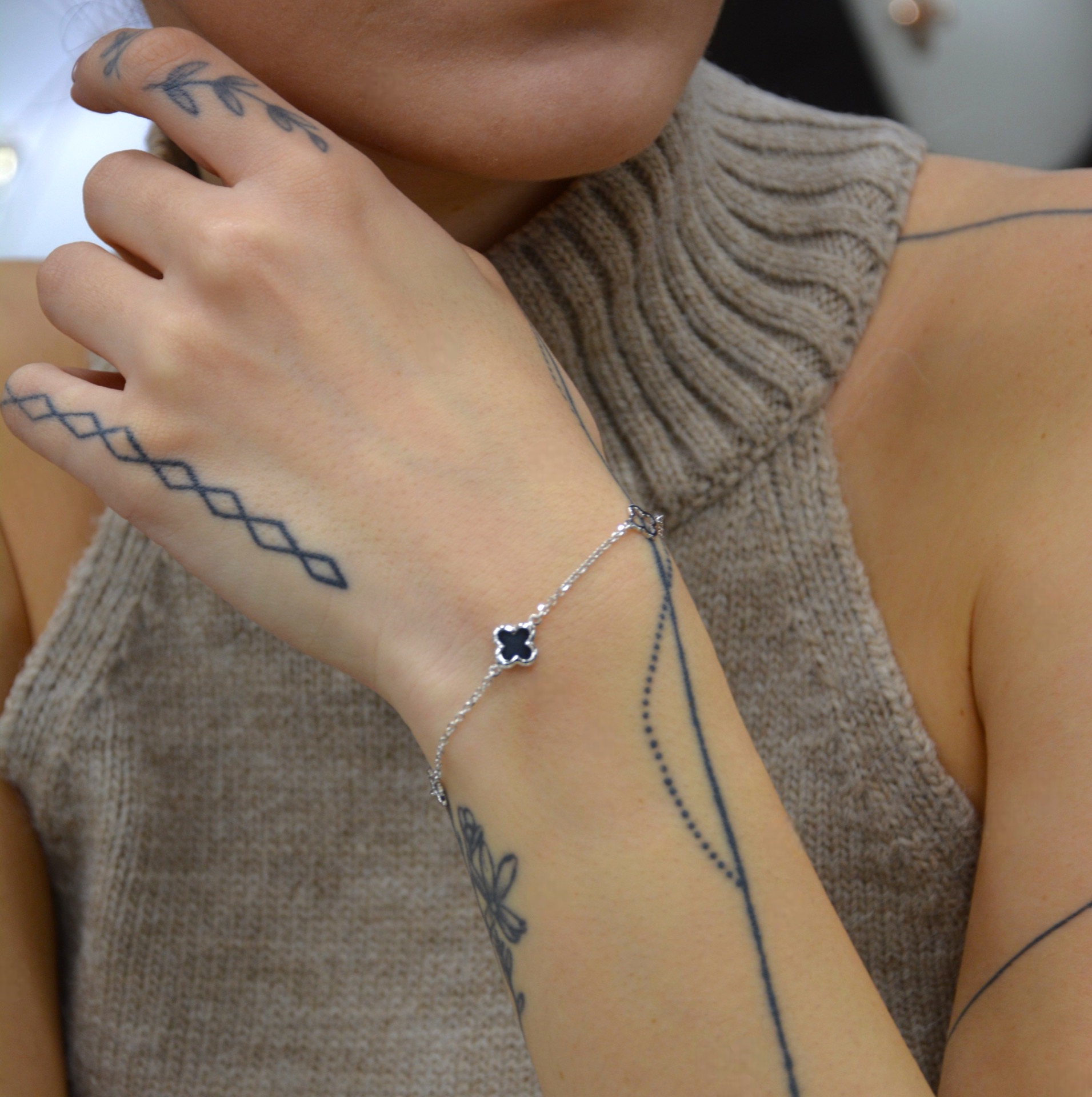 Λευκόχρυσο βραχιόλι με δυο σταυρουδάκια, το ενα απο όνυχα.