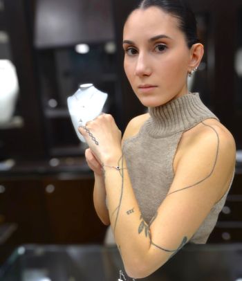 Λευκόχρυσο βραχιόλι με δυο σταυρουδάκια, το ενα απο όνυχα.