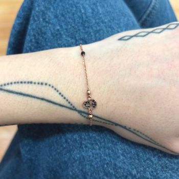 Βραχιόλι απο ροζ χρυσό κ9 με νεκροκεφαλή στολισμένη απο μαύρα ζιργκόν.