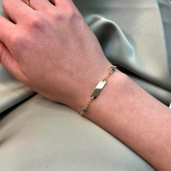 Βραχιόλι ταυτότητα με δύο ματάκια απο κίτρινο χρυσό Κ14 (code S170700)