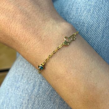 Χρυσό βραχιόλι κ9 με φορτιγάκι και μπλέ ματάκι (code AL2831)