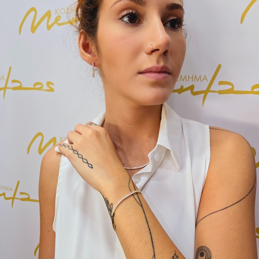 Βραχιόλι κατασκευασμένο απο χρυσό κ14, με καρφωμένα λευκά ζιργκόν