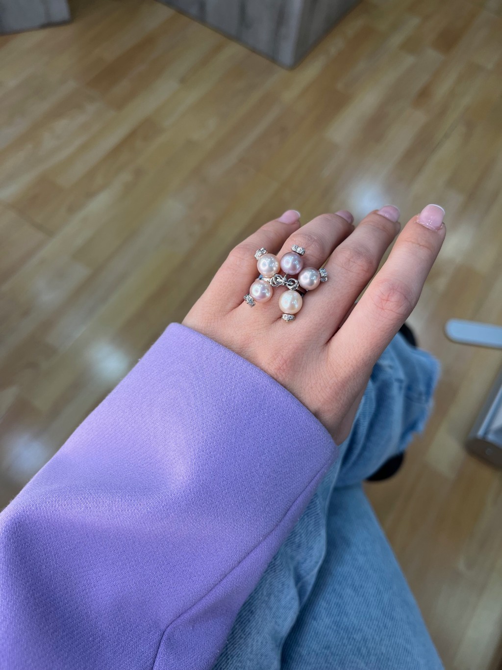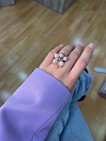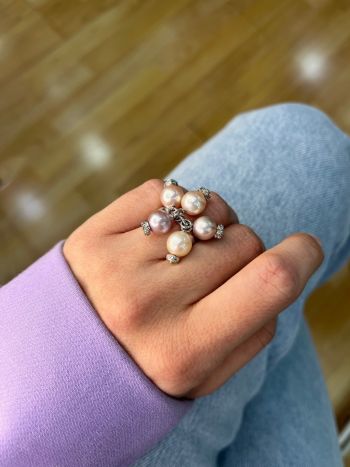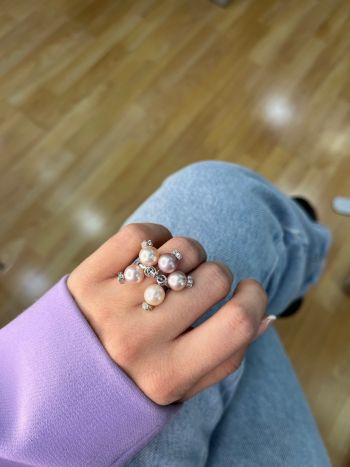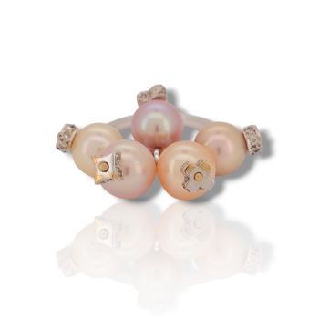 Δαχτυλίδι λευκόχρυσο Κ18 με μαργαριτάρια και διαμάντια (code M2890)