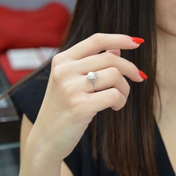 Λευκόχρυσό δαχτυλίδι κ9 με μαργαριτάρι & ζιργκόν (code S173608)