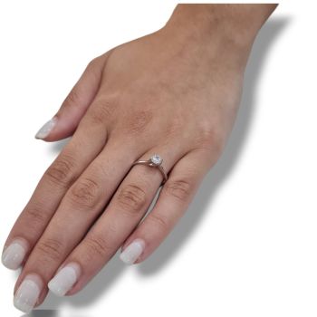 Δαχτυλίδι μονόπετρο απο λευκό χρυσό κ14