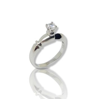 Δαχτυλίδι μονόπετρο απο λευκό χρυσό κ14.