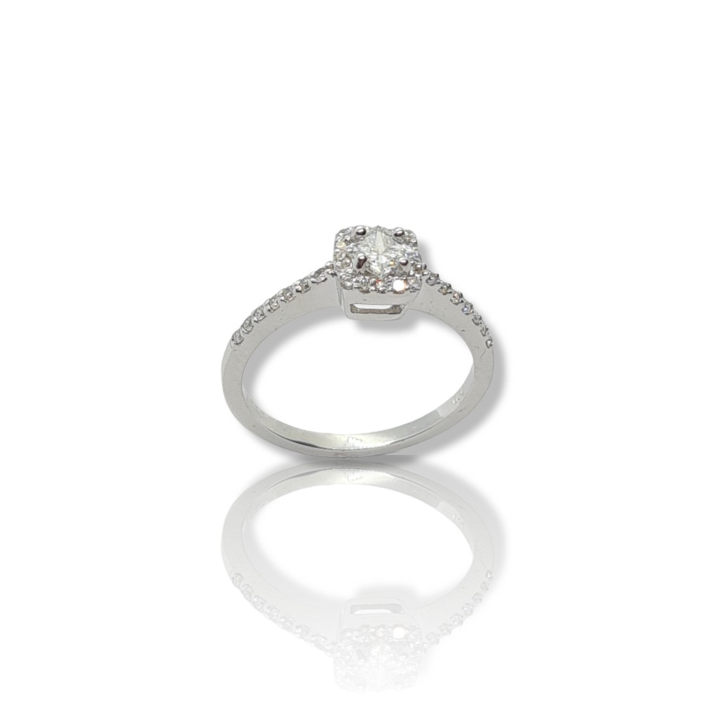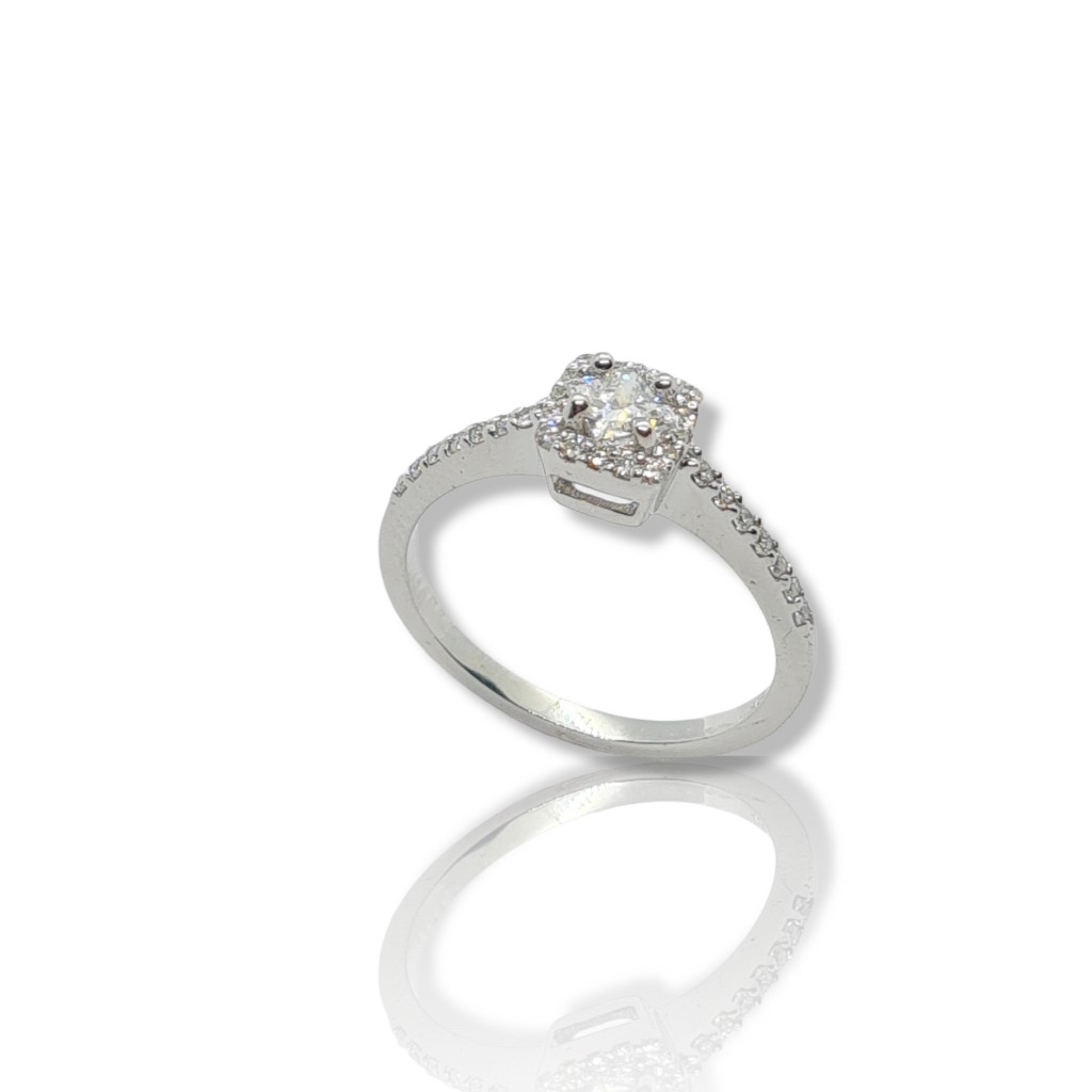 "Agaue" Δαχτυλίδι μονόπετρο απο λευκόχρυσο κ18 με διαμάντια (T2268).
