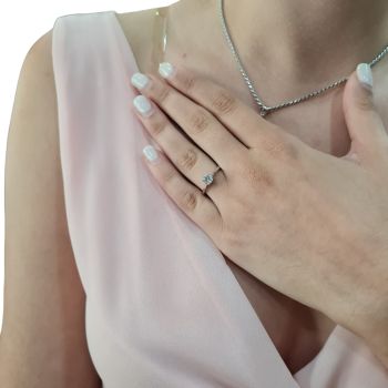 Δαχτυλίδι μονόπετρο απο λευκό χρυσό κ14.