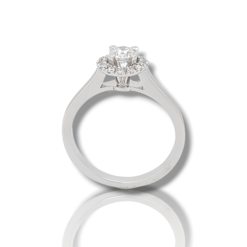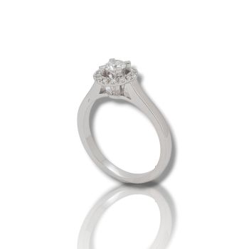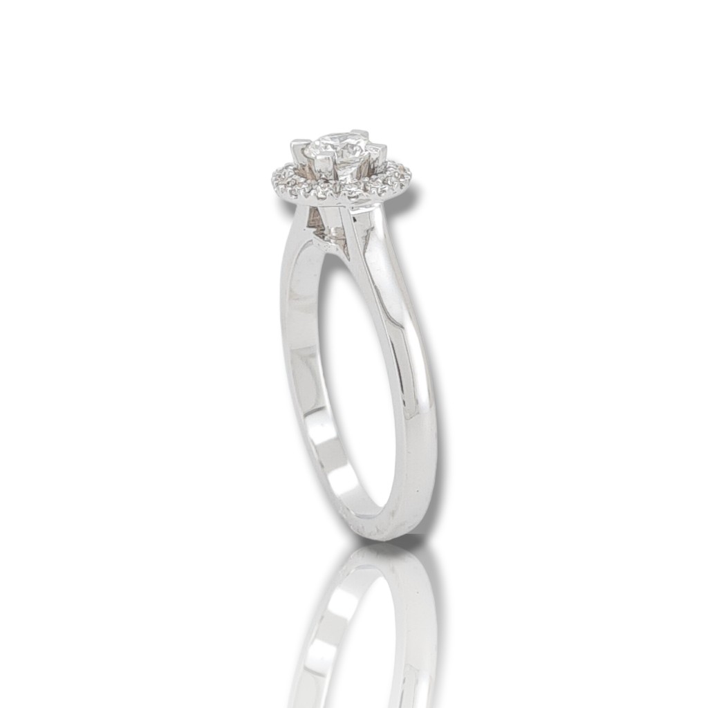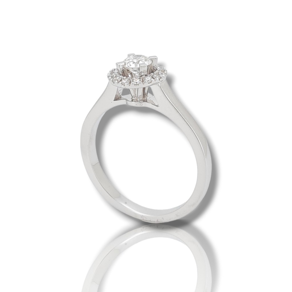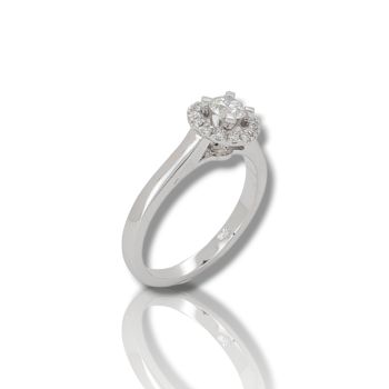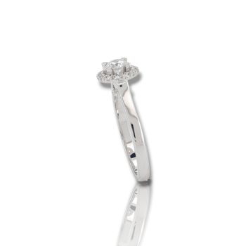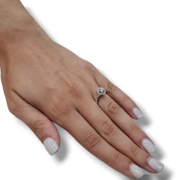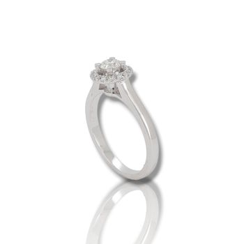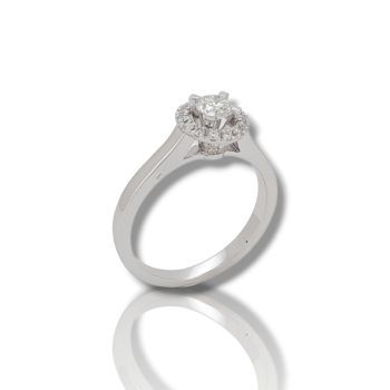 "Chloe" Μονόπετρο δαχτυλίδι απο λευκόχρυσο κ18 με διαμάντι κεντρικό σε τέσσερα δόντια και μικρά διαμάντια γύρω απο την κεντρική πέτρα (code T2606)