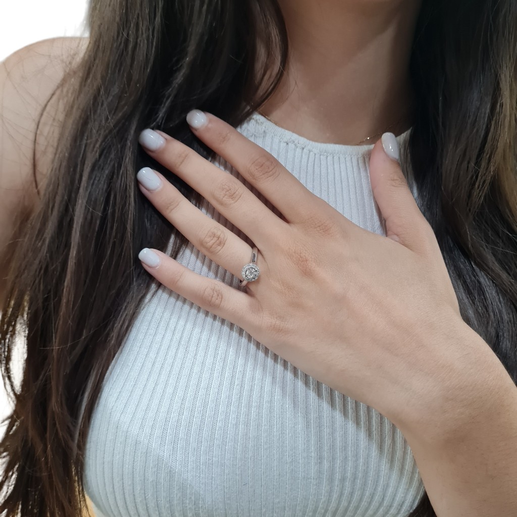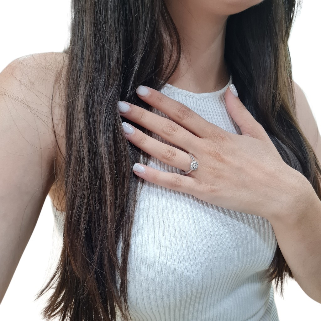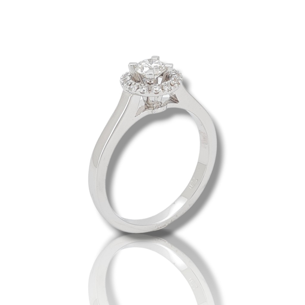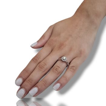"Chloe" Μονόπετρο δαχτυλίδι απο λευκόχρυσο κ18 με διαμάντι κεντρικό σε τέσσερα δόντια και μικρά διαμάντια γύρω απο την κεντρική πέτρα (code T2606)