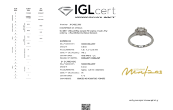 Δαχτυλίδι μονόπετρο απο λευκόχρυσο κ18 με μπριγιάν 0.30ct VVS2 / F & 0.11ct VS/F
