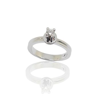 "Aias" Μονόπετρο δαχτυλίδι απο λευκόχρυσο κ18 με διαμάντι σε καστόνι με τεσσερα δόντια και μικρά διαμάντια στην βάση (code P2001)