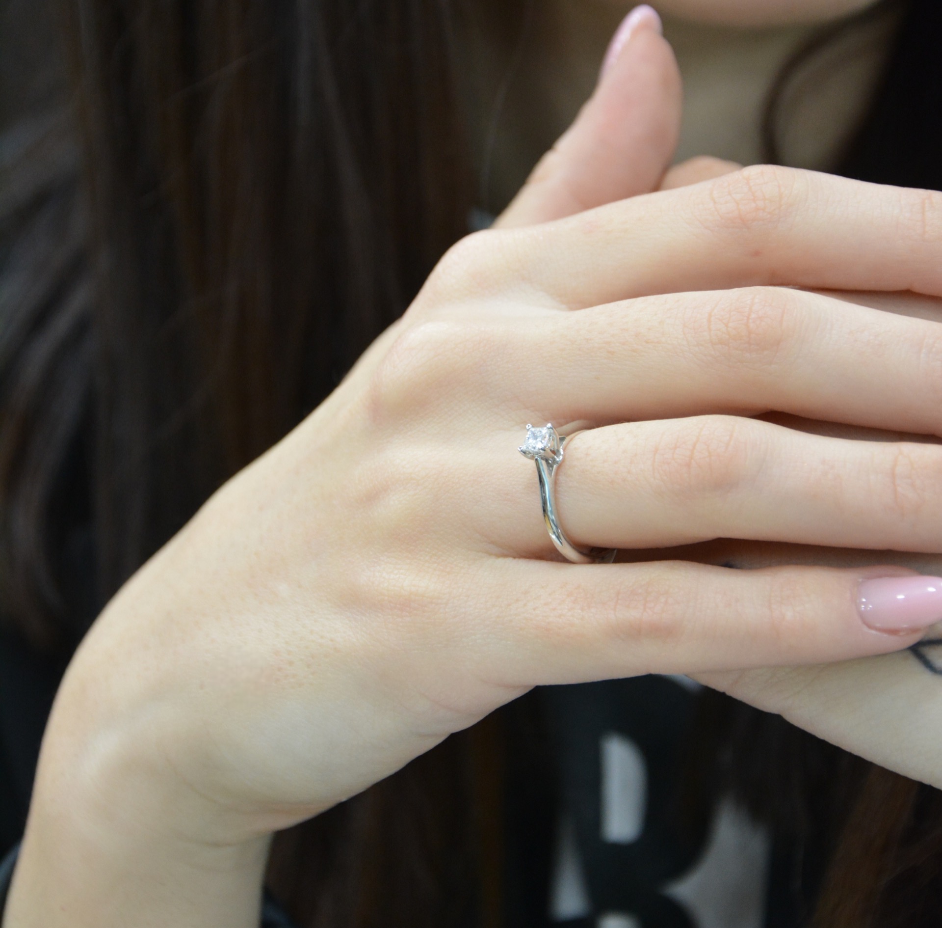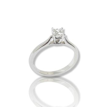 "Charis" Μονόπετρο δαχτυλίδι λευκόχρυσο κ18 με τετράγωνο διαμάντι δεμένο σε καστόνι με τέσσσερα δόντια (code T2016)