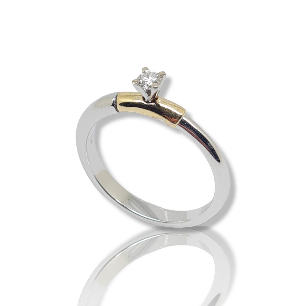 Δαχτυλίδι μονόπετρο απο λευκόχρυσο & χρυσό κ18 με μπριγιάν 0.11ct VS1/G