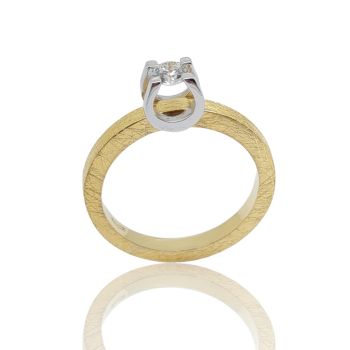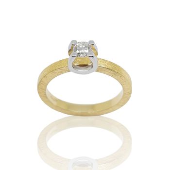 "Pallas" Δαχτυλίδι μονόπετρο απο χρυσό κ18 ματ, με διαμάντι καρφωμένο σε λευκόχρυση βάση με τέσσερα δόντια (code 1989)