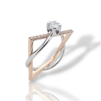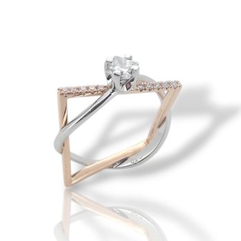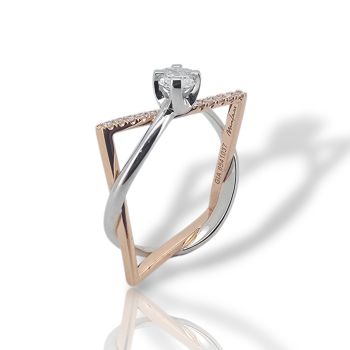 Το δαχτυλίδι Eclipse είναι ένα εντυπωσιακό μονόπετρο που συνδυάζει ροζ και λευκό χρυσό σε έναν μοντέρνο γεωμετρικό σχεδιασμό. Στο κέντρο του δεσπόζει ένα διαμάντι 0.40ct, ποιότητας VVS1 D με πιστοποίηση GIA, κοπής 3EX, που χαρίζει εκτυφλωτική λάμψη και διαχρονική κομψότητα. Ένα δαχτυλίδι που ενώνει τη σύγχρονη αισθητική με την αιώνια υπόσχεση αγάπης.