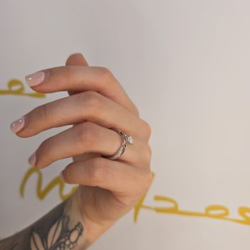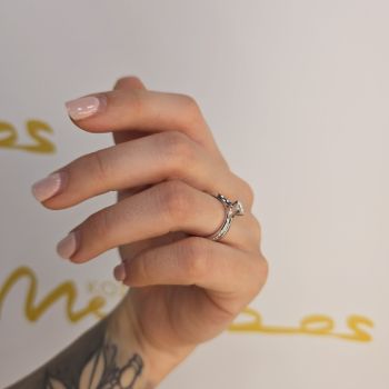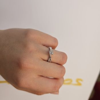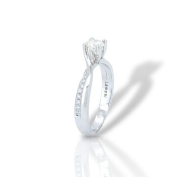 "Lampsi" Μονόπετρο δαχτυλίδι φλόγα απο λευκόχρυσο κ18 με διαμάντι δεμένο σε τέσσερα στριφτά δόντια (code T2933)