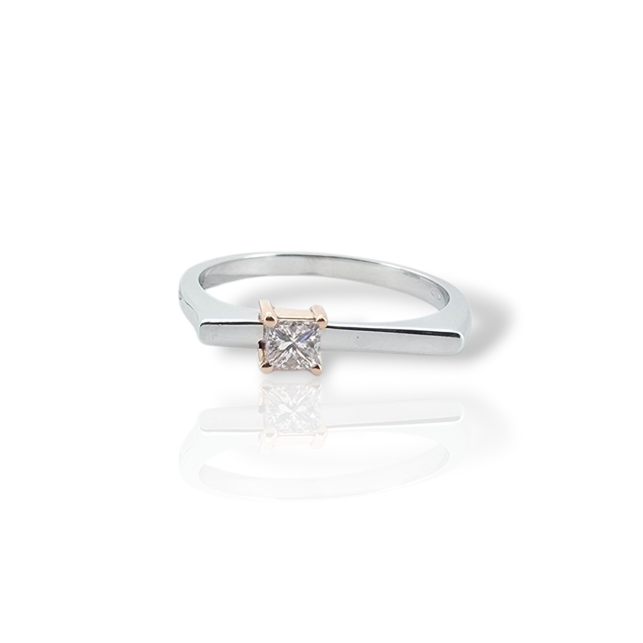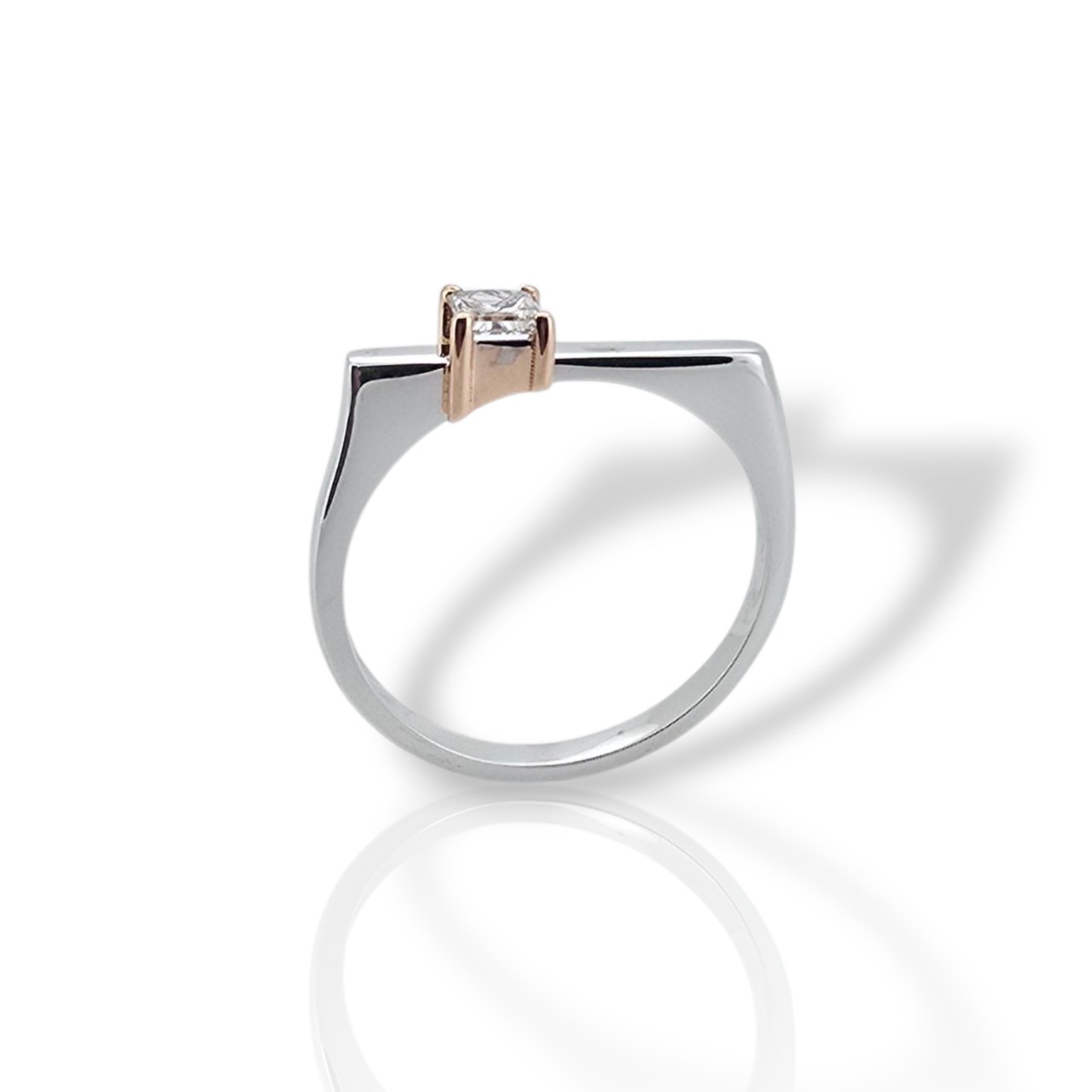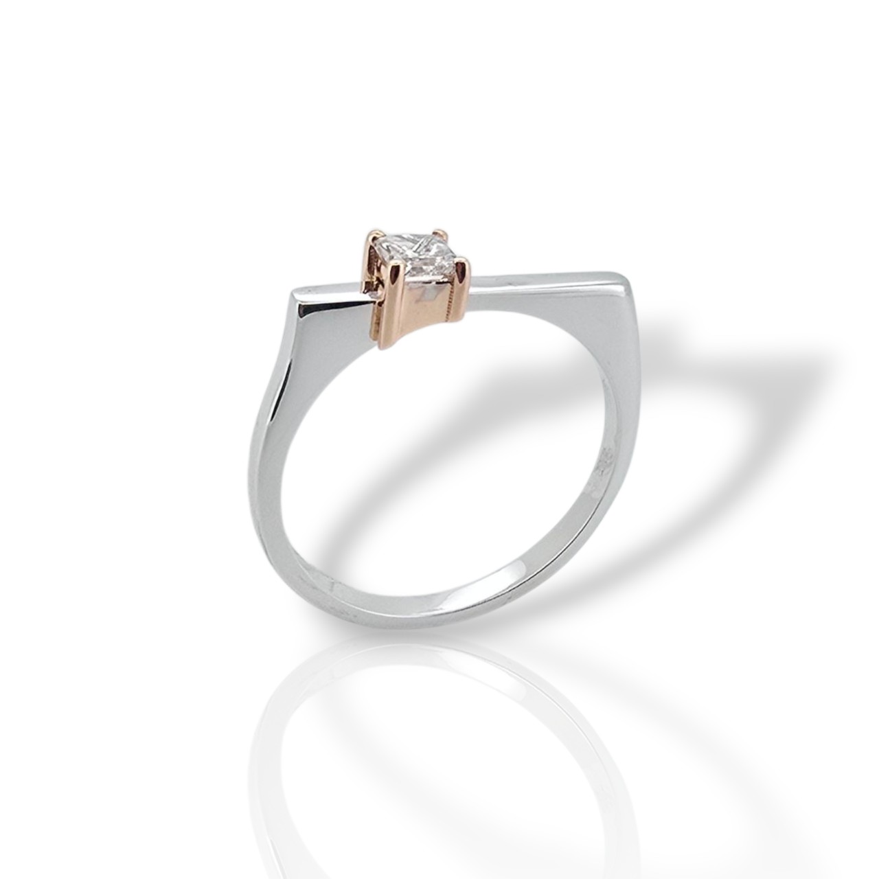 Δαχτυλίδι απο λευκό και ροζ χρυσό κ18 με ένα διαμάντι 0.26 VS1 / G Princess-Cut