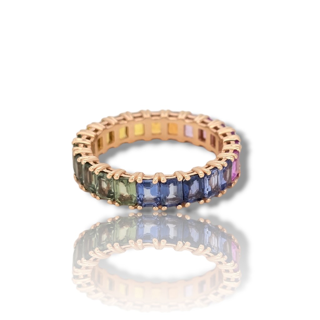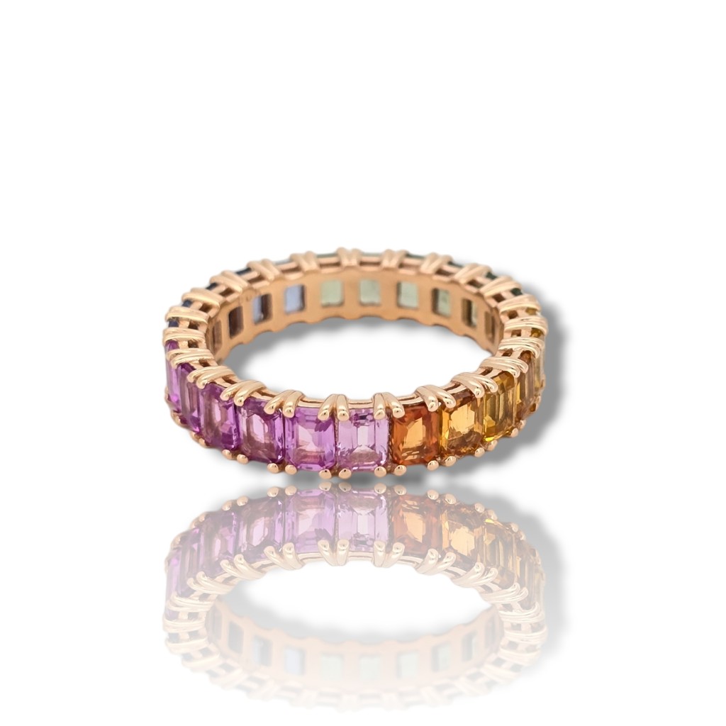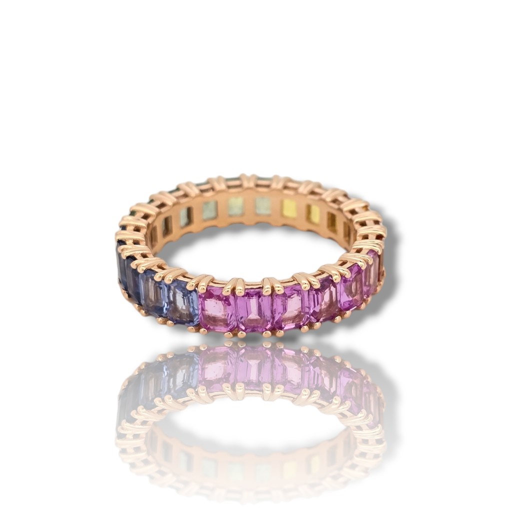 Ολόβερο δαχτυλίδι απο ρόζ χρυσό με πολύχρωμα ζαφέιρια (FANCY) 6.30ct