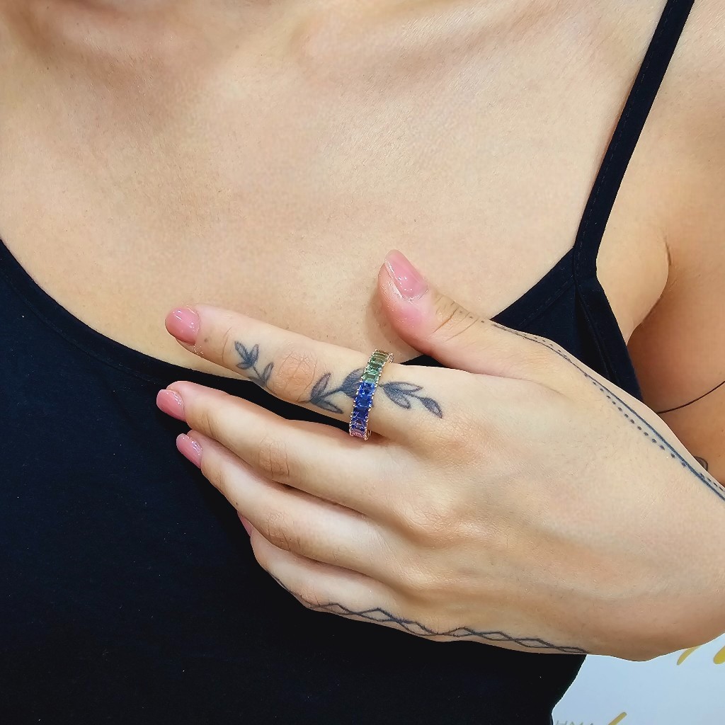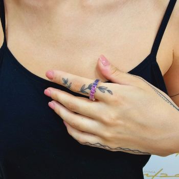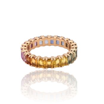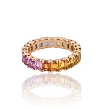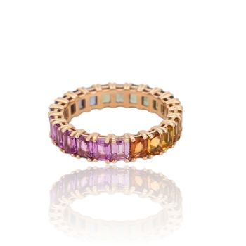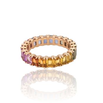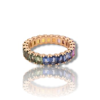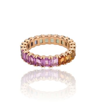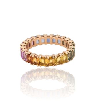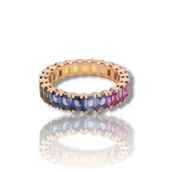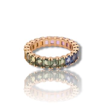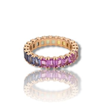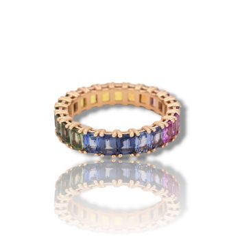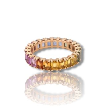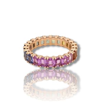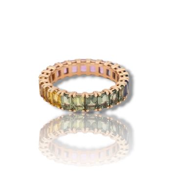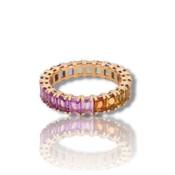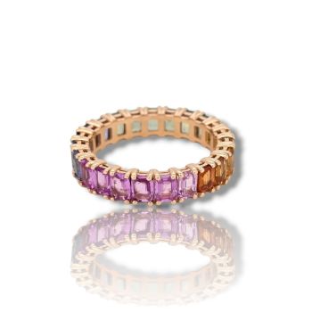 Δαχτυλίδι ολόβερο απο ροζ χρυσό κ14 με πολύχρωμα ζαφείρια (code M2873)