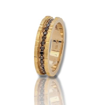 Δαχτυλίδι σειρέ απο κίτρινο χρυσό κ14 με μαύρα διαμάντια (code M2709)