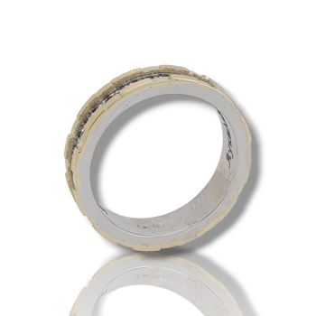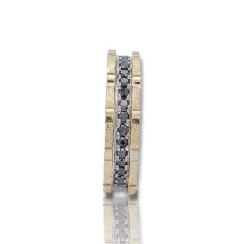 Δαχτυλίδι σειρέ απο λευκό & κίτρινο χρυσό κ14 με μαύρα διαμάντια (code M2713)