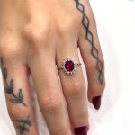 Ένα κομψό δαχτυλίδι ροζέτα από λευκόχρυσο 9 καρατίων, στολισμένο με εντυπωσιακό συνθετικό ρουμπίνι που χαρίζει διαχρονική λάμψη και χρώμα. Ο ιδανικός συνδυασμός κλασικής αισθητικής και μοντέρνας κομψότητας για κάθε περίσταση.