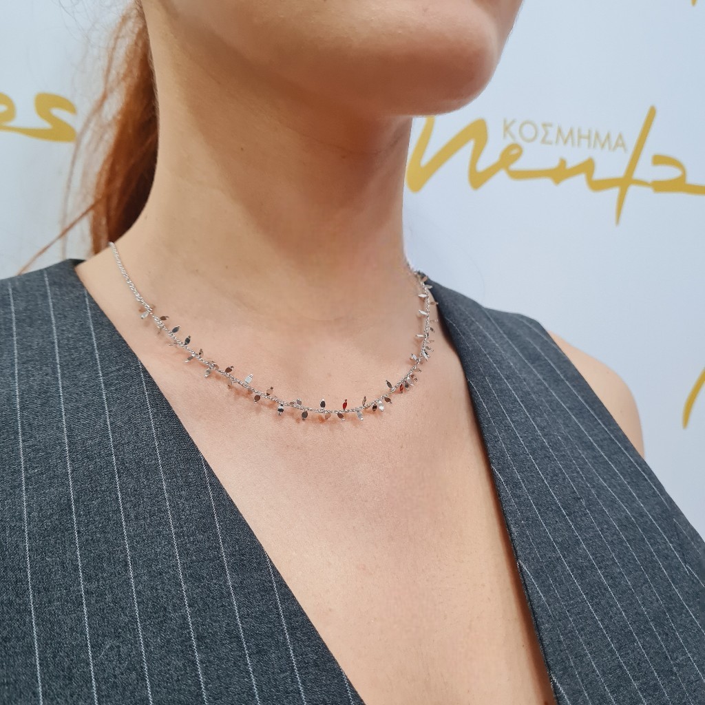 Λευκόχρυσο κολιέ κ14 με μικρά φύλλα (code S246140)
