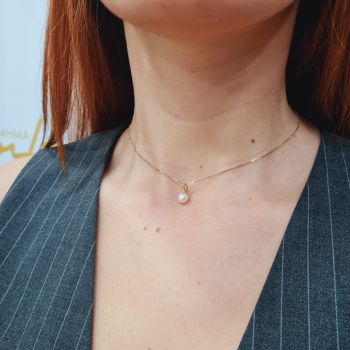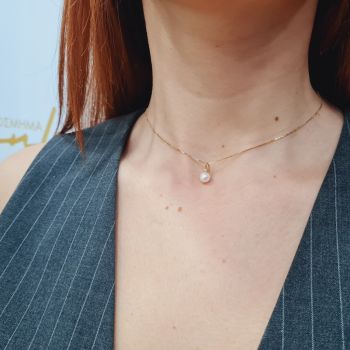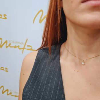 Χρυσό κολιέ κ9 με μαργαριτάρι κι ενα ζιργκόν στην κορυφή (code S173625)