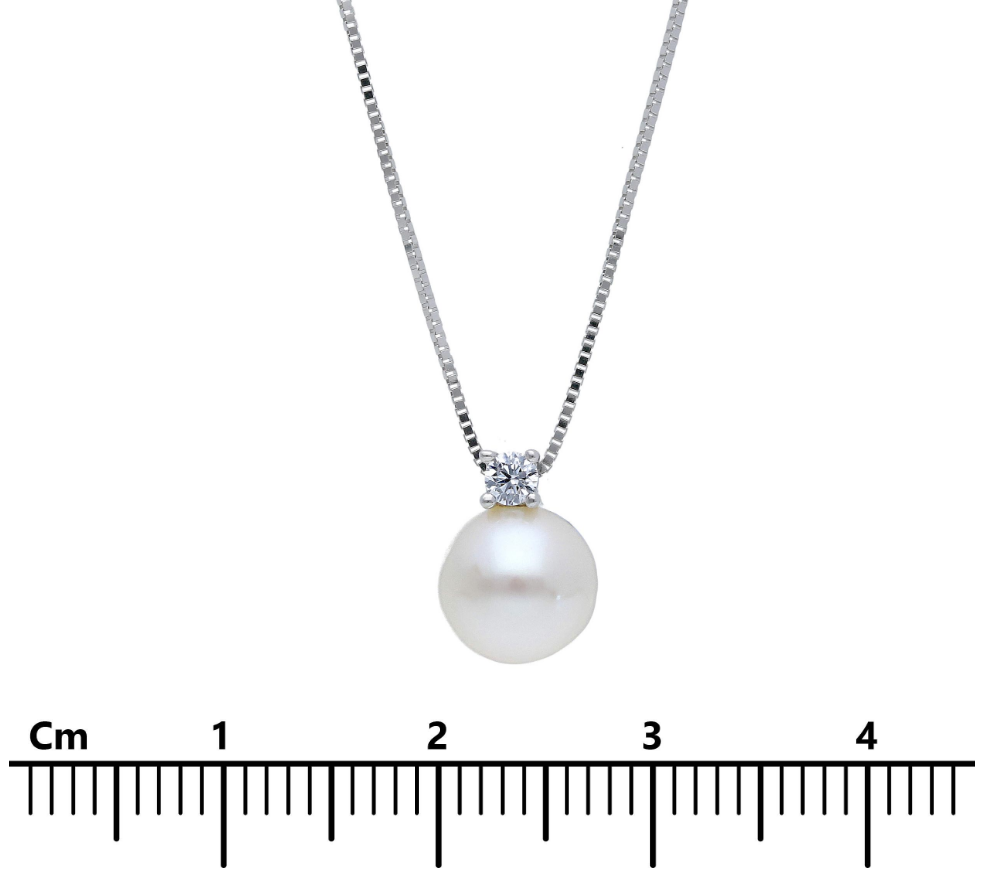 Λευκόχρυσο κολιέ κ9 με μαργαριτάρι και ενα ζιργκόν στην κορυφή ( code S173624)