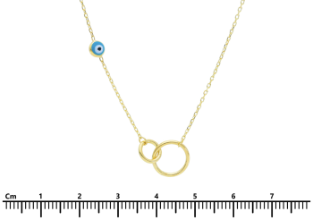 Κολιέ απο χρυσό Κ14 με δύο κρλικους και μπλέ ματάκι (code S249363)