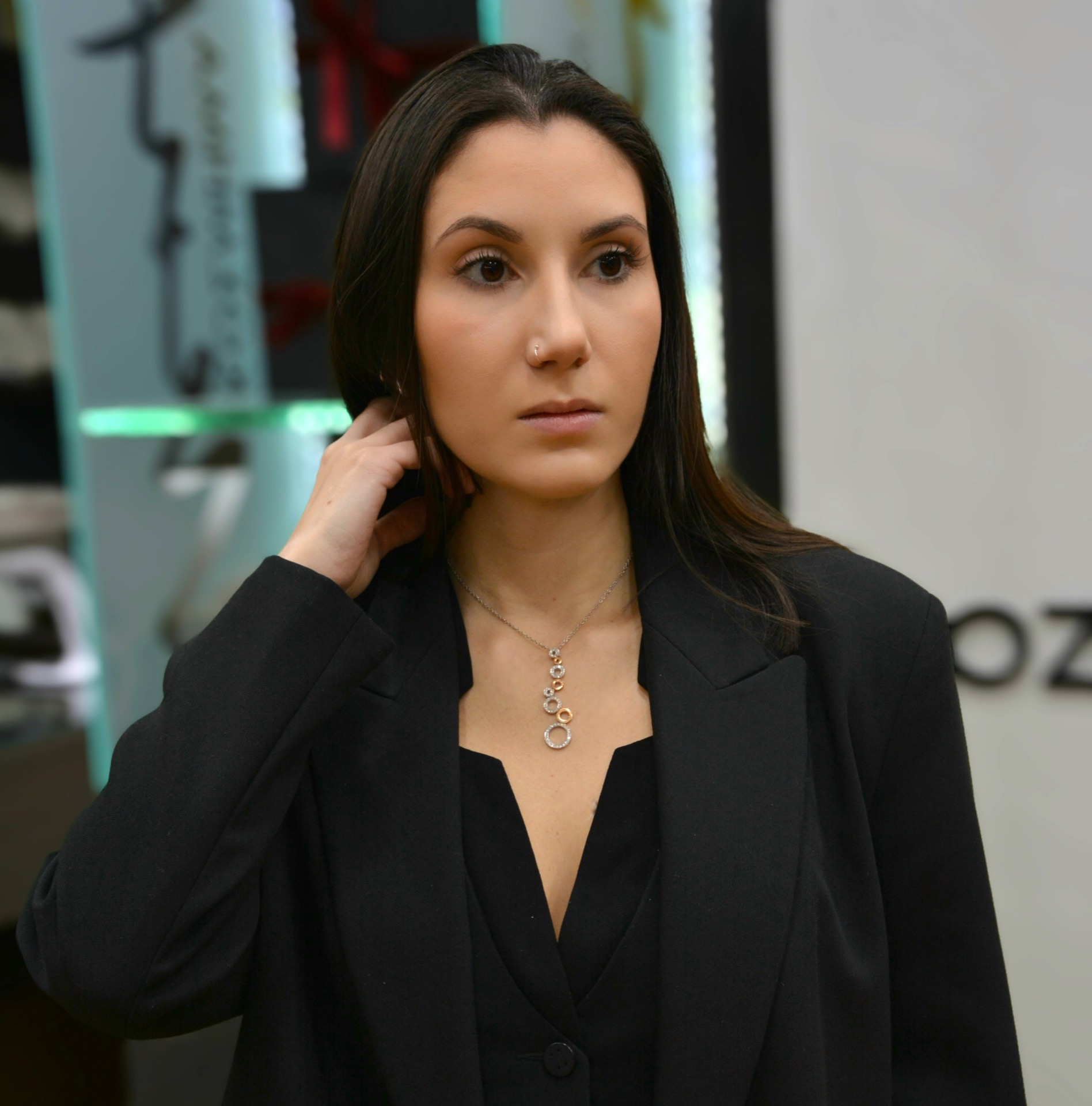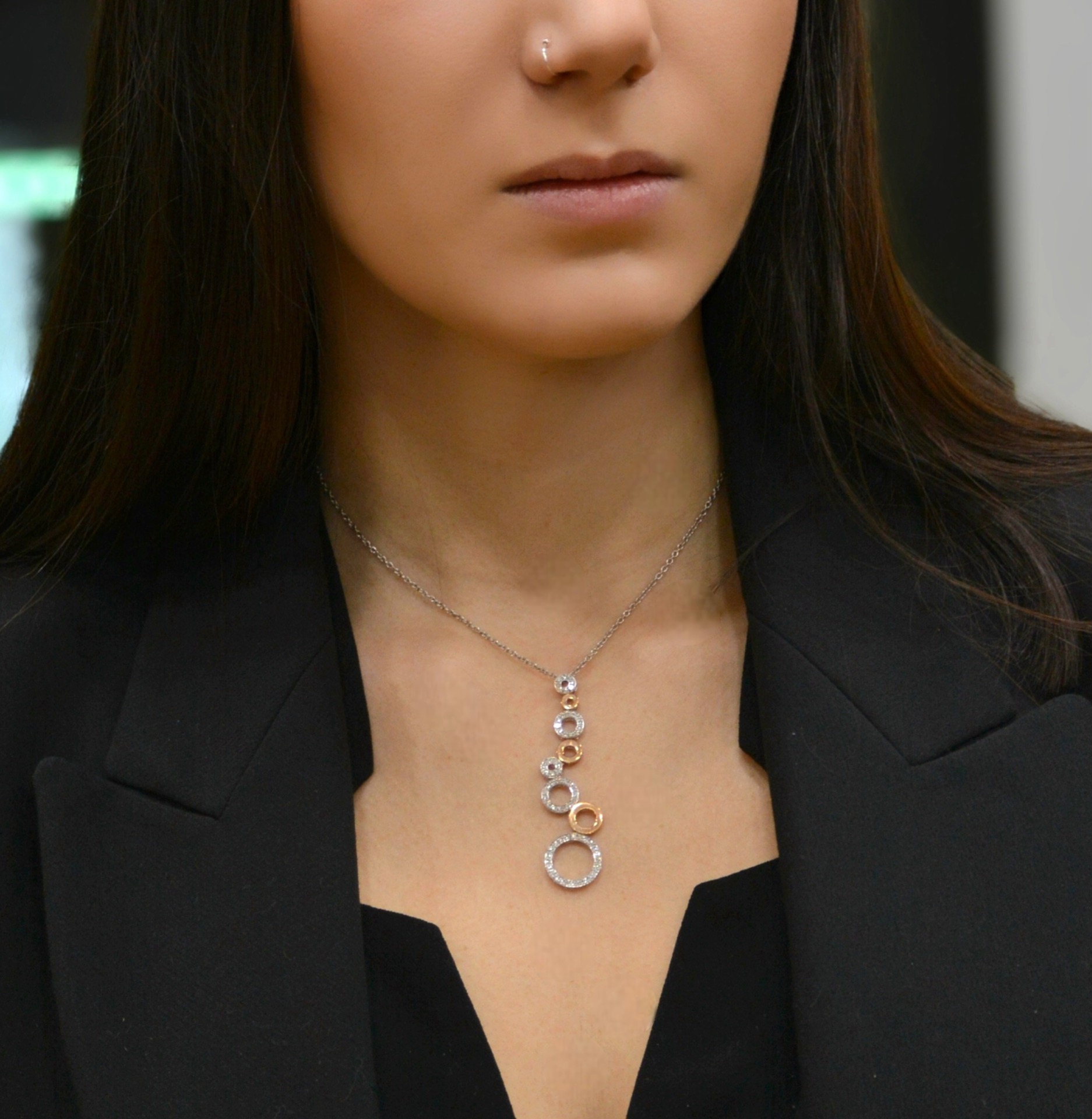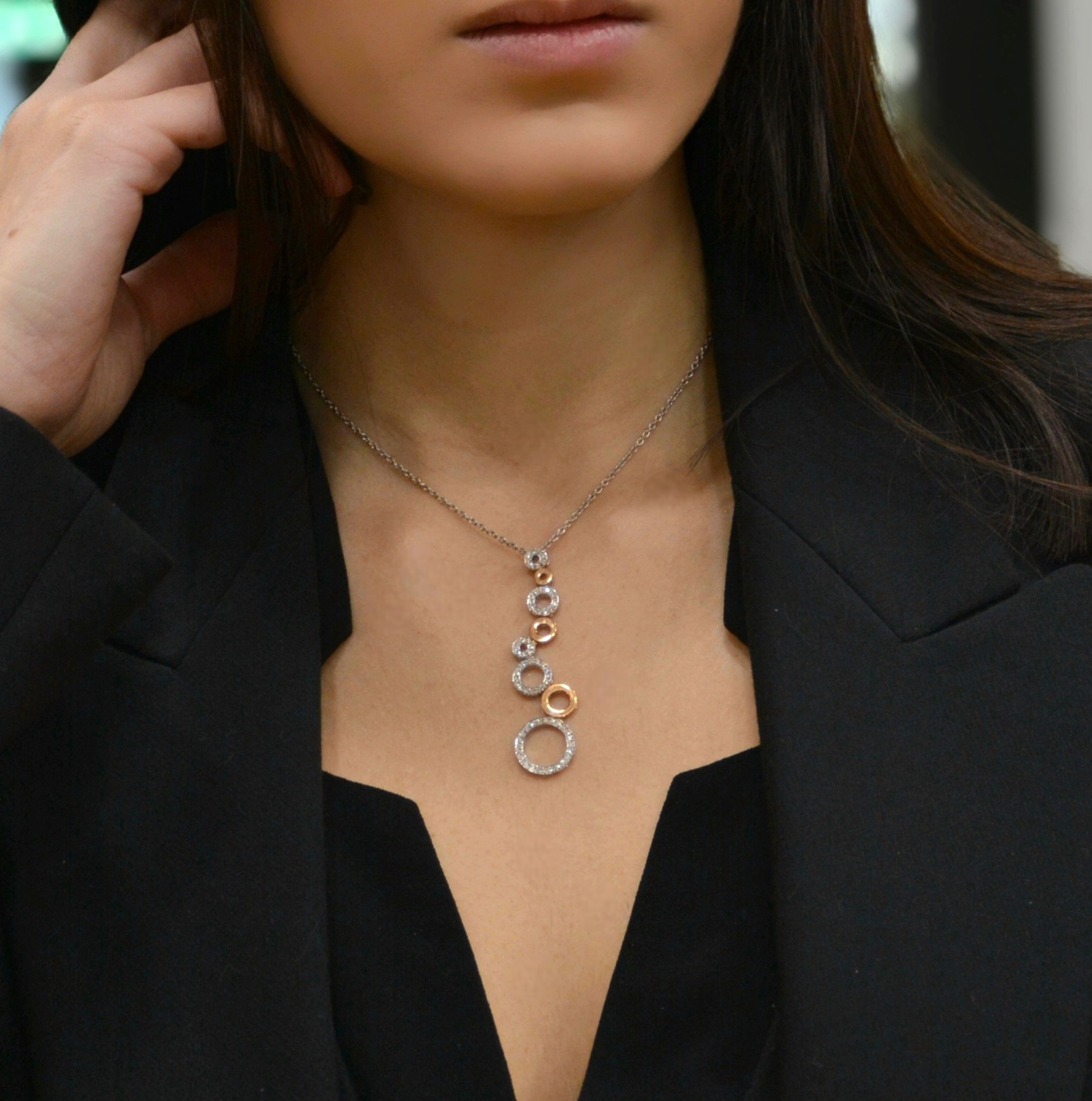 Κολιέ απο λευκόχρυσο & ροζ χρυσό Κ18 με διαμάντια (code N2390)