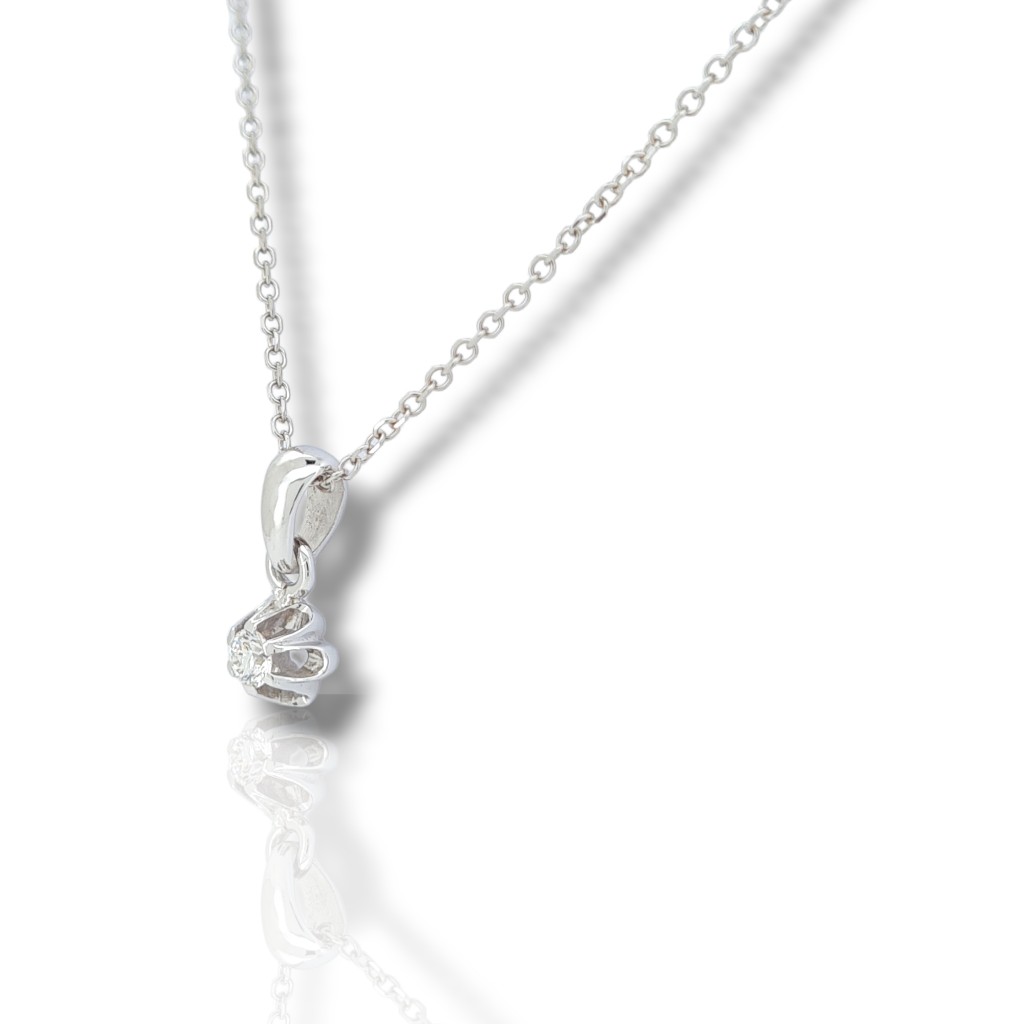 Μονόπετρο κολιέ απο λευκόχρυσο με μπριγιάν 0.08ct VS1/Ε. Στην τιμή συμπεριλαμβάνεται η αλυσίδα 45cm.