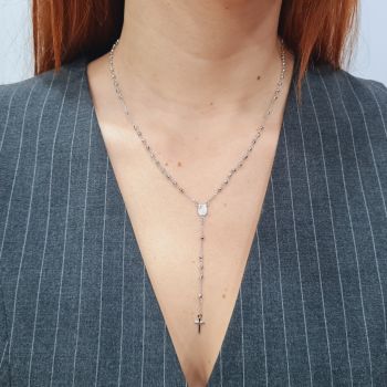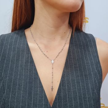 Κολιέ ροζάριο απο λευκόχρυσο κ14 (code S220667)