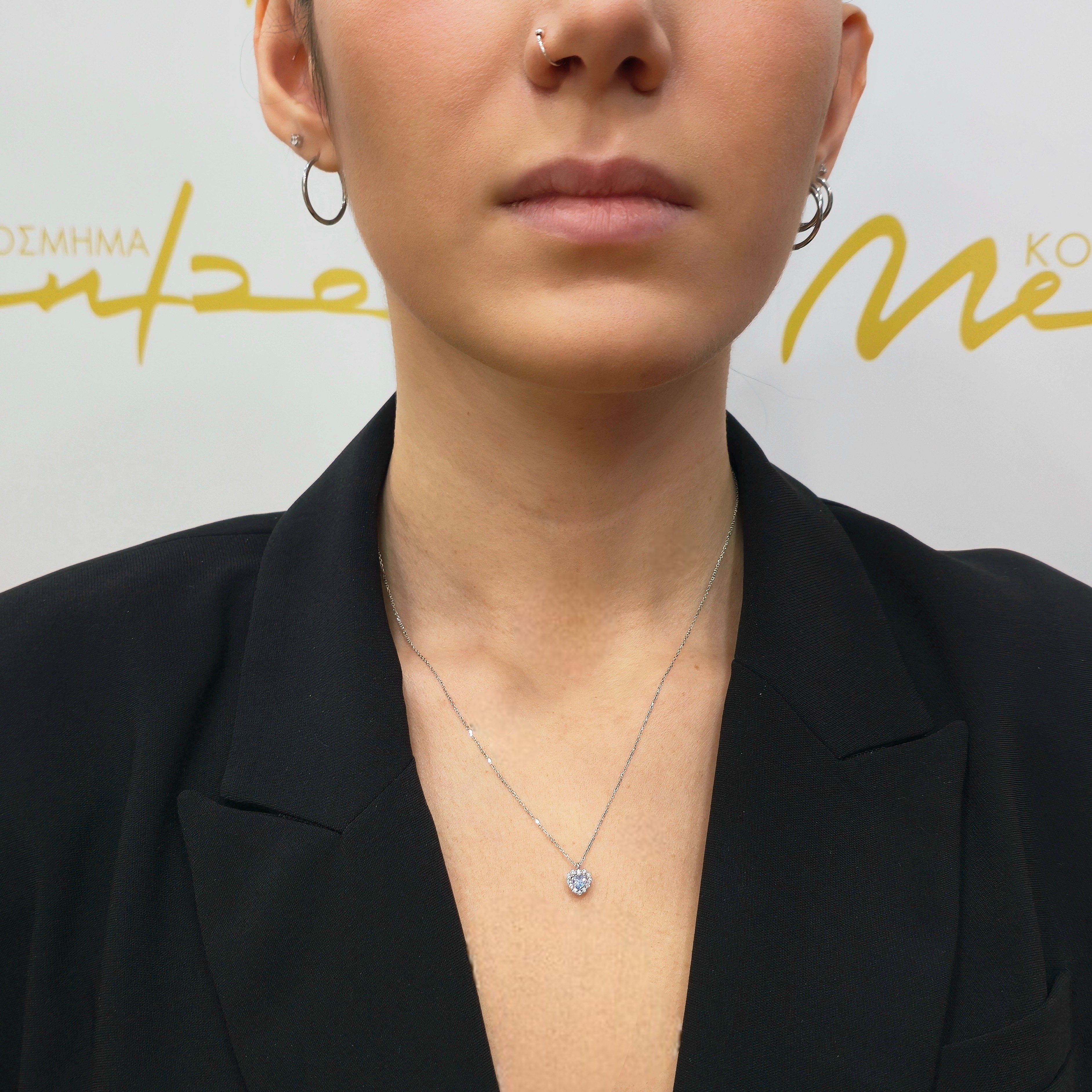 Ένα κομψό κολιέ ροζέτα από λευκόχρυσο 9 καρατίων, στολισμένο με εντυπωσιακό συνθετικό Blue Topaz που χαρίζει διαχρονική λάμψη και χρώμα. Ο ιδανικός συνδυασμός κλασικής αισθητικής και μοντέρνας κομψότητας για κάθε περίσταση.